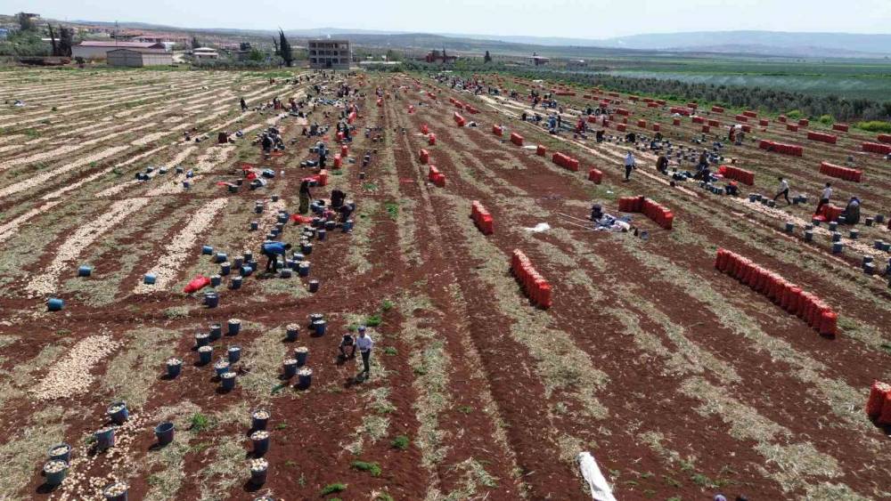 Türkiye’nin en bereketli topraklarından olan ve birçok ürünün yetiştiği Hatay’ın Amik Ovası’nda baharın gelmesiyle ürünler hasat edilmeye başlandı. Reyhanlı ilçesi Bükülmez Mahallesi’nde 45 dönümlük tarlada ekimi yapılan soğanda da hasat başladı. Kuraklığa rağmen rekoltenin yüksek olduğu soğan, tarladan 15 TL ile 20 TL’yi bulan fiyatlarla alıcı buluyor. Hasat edilen soğanların ihracat yoluyla Rusya gibi Balkan ülkelerine gönderildiğini ifade eden üretici Reşit Kaya, Eylül ayına kadar soğan hasadının devam edeceğini söyledi.