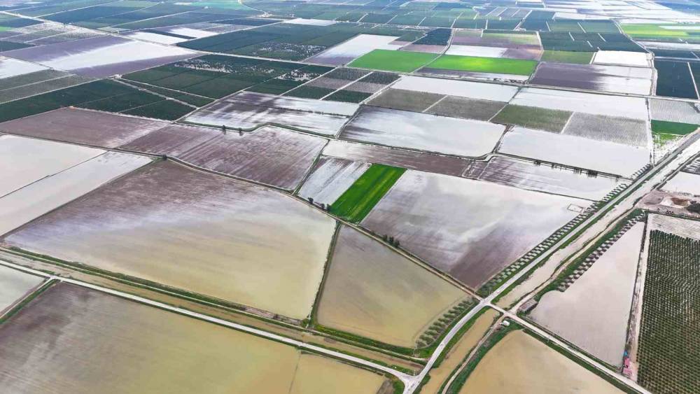 Çukurova’nın tarım başkenti Adana’da, son aylardaki yağışlar tarımsal üretimi olumsuz etkiledi. Özellikle mart ayının son haftalarında etkisini artıran yağışlar nedeniyle Yüreğir Ovası’nda birçok tarla su altında kaldı. Dron ile görüntülenen alanlarda, ekili arazilerin büyük bölümünün sularla kaplandığı görüldü. Bölgede mısır, karpuz, kavun, domates ve biber ekimi yapılırken, bazı alanlarda ise narenciye hasadının henüz tamamlanmadığı öğrenildi.