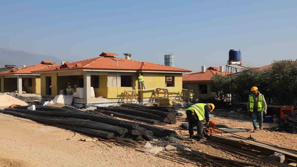 Hatay Büyükşehir Belediyesi’nce kırsal dönüşüm hamlesi kapsamında inşa edilen 28 konut yükselmeye devam ediyor