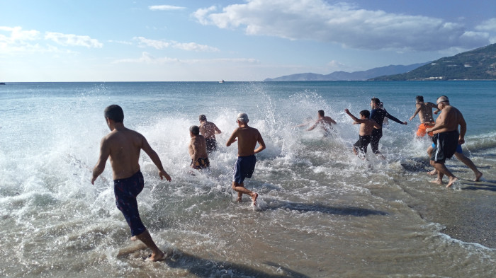 Kayak yaptıktan sonra Deniz Kenarına gelen Ali Balcı da" Karşıdaki karlı dağlara gittik kayak yaptık geldik. Şimdi de denize giriyoruz, deni çok güzel" dedi.