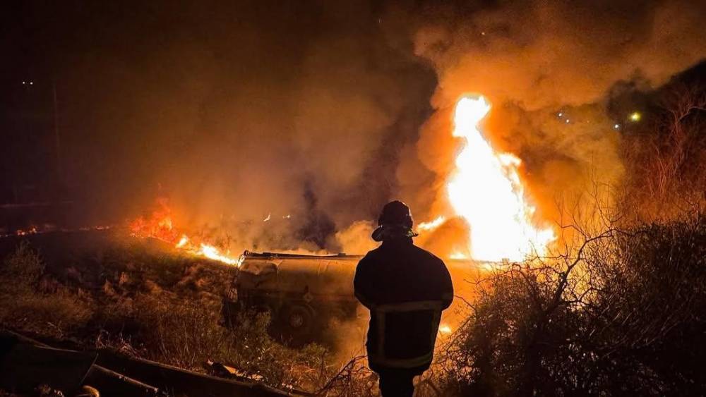 Osmaniye’de devrilen akaryakıt yüklü tanker alev alev yandı