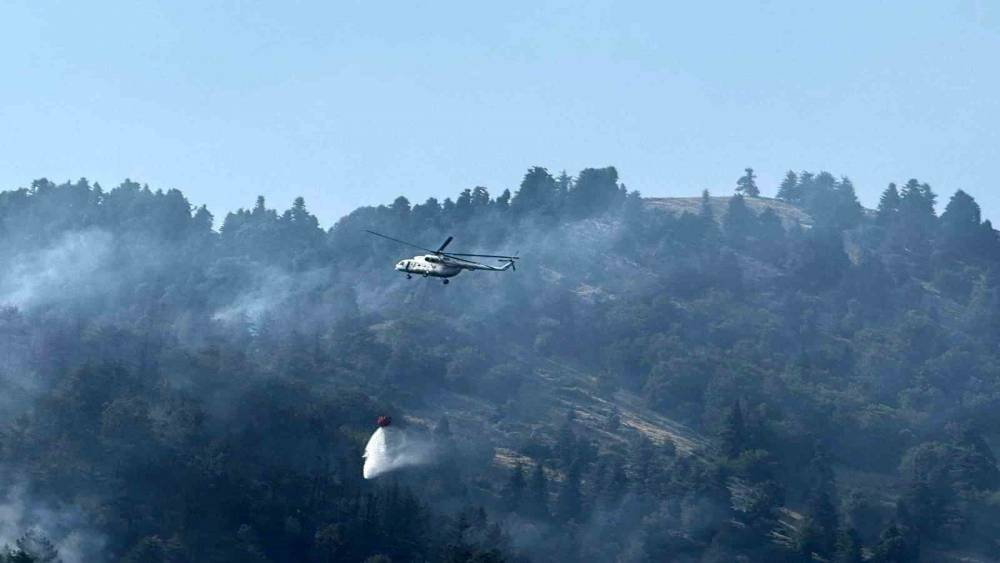 Osmaniye’nin Düziçi ilçesinde başlayan orman yangınına ekiplerin müdahalesi havadan ve karadan devam ediyor.
