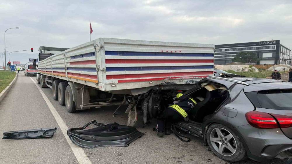 Kahramanmaraş’ta meydana gelen trafik kazasında tırın altına giren otomobilin sürücüsü yaralandı