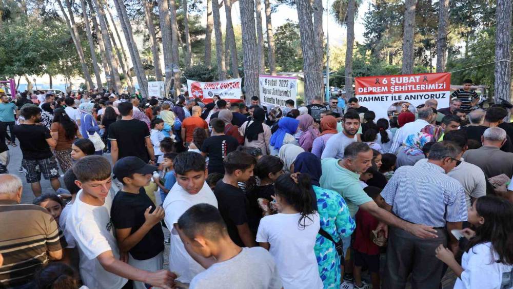 HATAY (İHA) – Hatay’da depremde hayatını kaybedenler için düzenlenen mevlit programında hayırseverler tarafından ücretsiz verilen ikramların dağıtımı esnasında izdiham yaşandı.