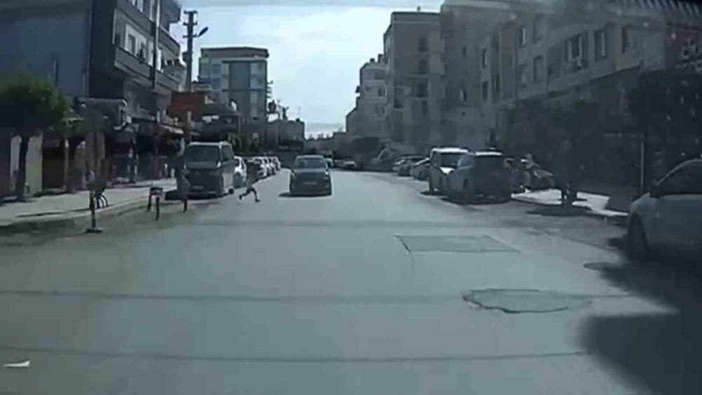 Hatay’da yola fırlayan çocuğa çarpmamak isteyen otomobil sürücüsünün karşı yönden gelen otomobille kafa kafaya çarpıştığı kaza, araç kamerasına yansıdı.